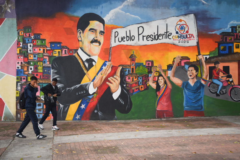 9月22日,在委内瑞拉首都加拉加斯,行人从街头支持马杜罗总统的宣传标语前走过。 新华社发(马科斯·萨尔加多摄)